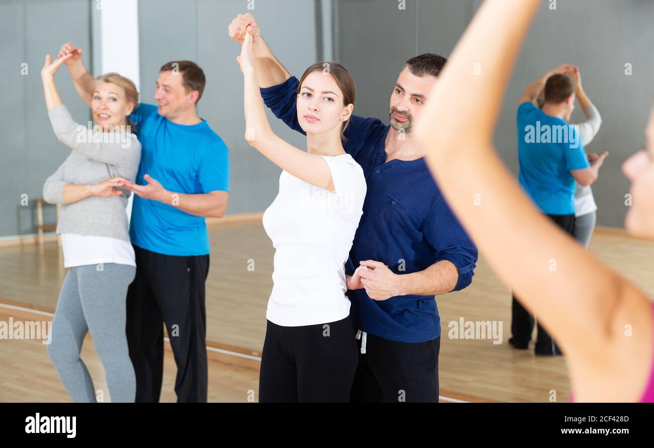 Young Sporty Woman Enjoying Bachata Dance With Partner In Dancing Class Stock Photo Alamy